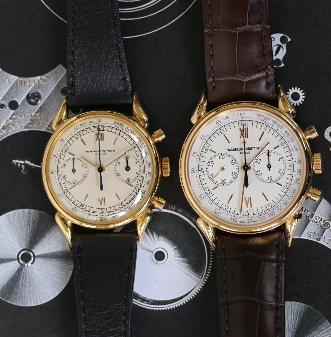 虽然后者表径只有38毫米多一点,在现代表迷眼里算小尺寸,但与六七十年前的古董表款相比,还是要大上一圈,放在一起倒是像一对情侣表。
